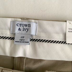 Crown & Ivy Petite Pants Cary Style Straight Ankle Stretch Khaki Size 12P NWT