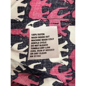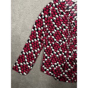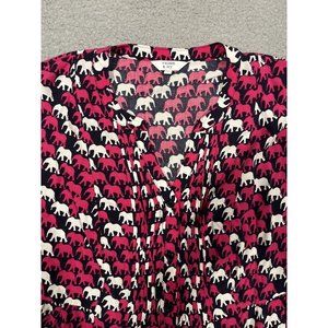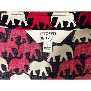 Crown & Ivy Pink Elephant Button Pleated Top Blouse Roll Tab Sleeve L Large