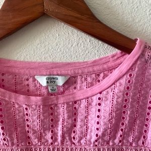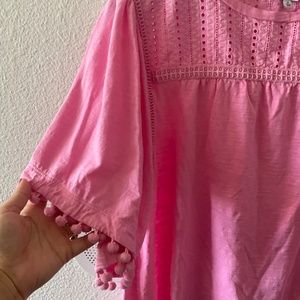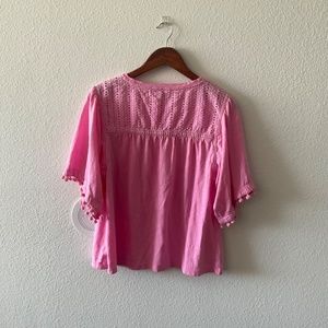 Crown & Ivy Pink Eyelet Pom Pom Cotton Blouse S