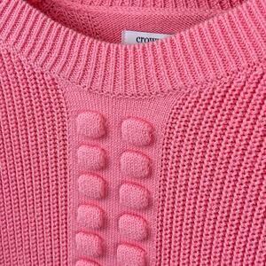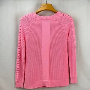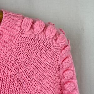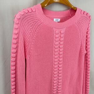Crown & Ivy Pink Long Sleeve Pom Pom Knit Sweater Preppy Barbie sz Small