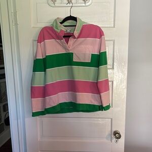Crown & Ivy Pink and Green Rugby Sweatshirt Pullover