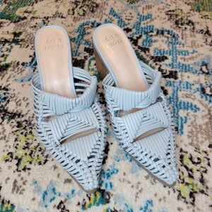 Crown & Ivy Piper Haurache Blue Heeled Mules, Size 7.5