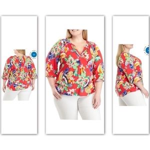 Crown & Ivy Plus Size 3/4 Sleeve Floral Peasant Top