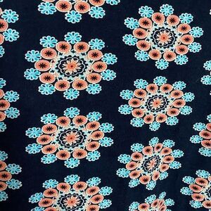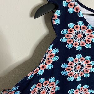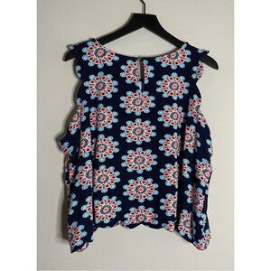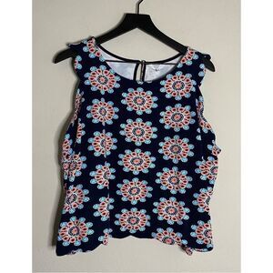 Plus size scallop hem ponte tank from Crown & Ivy. Blue and coral pattern on navy. Size 1X. Gently preowned condition with no tears or stains.