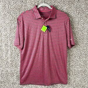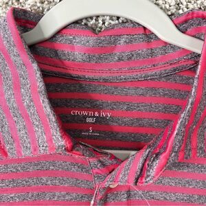Crown & Ivy Polo Men’s Small Golf Pink/Grey Striped Short Sleeve Performance NWT