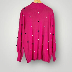 Crown & Ivy | Pom Pom Knit Sweater Puff Sleeve Pullover Pink