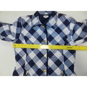 Crown & Ivy Quilted Jacket Size SMALL Blue & White Plaid beautiful coat (nn55)