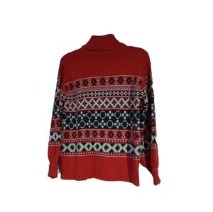 Crown & Ivy Red Aztec Cowl Neck Chunky Cable Knit Whimsical Sweater Size S