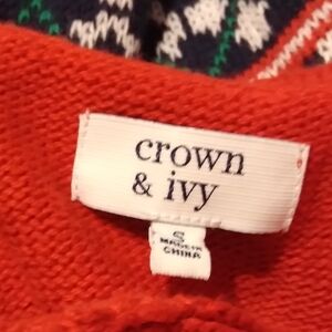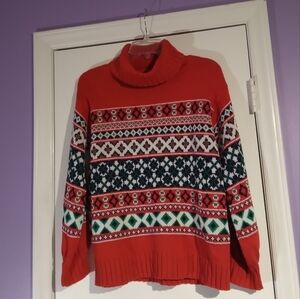 Crown & Ivy Red Aztec Cowl Neck Chunky Cable Knit Sweater Size S.