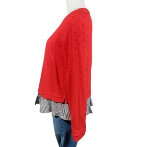 Crown & Ivy Red Raised Polka Dot Layered Look Sweater with Plaid Size Petite M