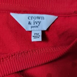 Crown & Ivy Red Raised Polka Dot Layered Look Sweater with Plaid Size Petite M. This sweater is in excellent used condition.