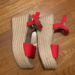 Stylish Crown & Ivy red sandals featuring a comfortable ankle strap. Perfect for casual outings. Size 6.5. Never worn