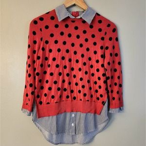 Crown & Ivy Red Sweater Built in Button Shirt underneath womens XS