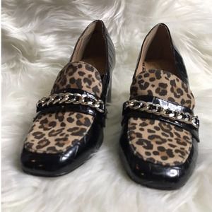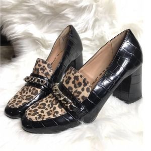 Crown & Ivy | Scarlett Leopard Print & Black Heeled Loafers