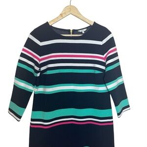 Crown & Ivy Shift Dress Ribbed Navy White Mint Pink Stripe Small Coastal Spring