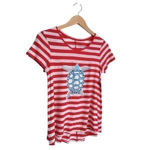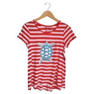 Crown & Ivy Shirt Size Extra Small Striped Short Sleeve Turtle NWT