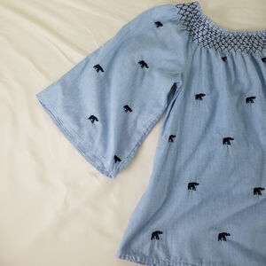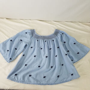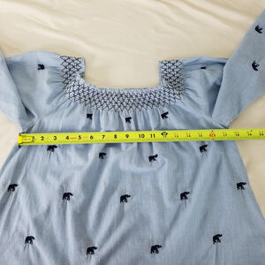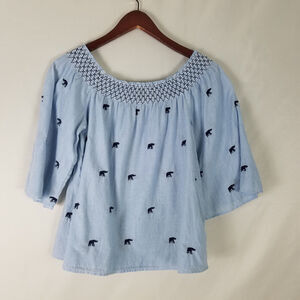 Crown & Ivy Shirt Womens Small Top Embroidered Elephant 3/4 Sleeve Smocked Boat