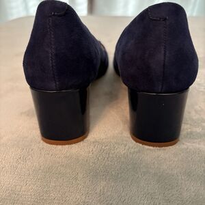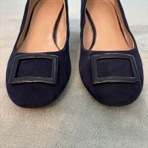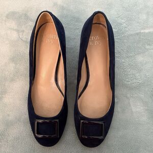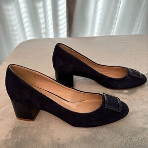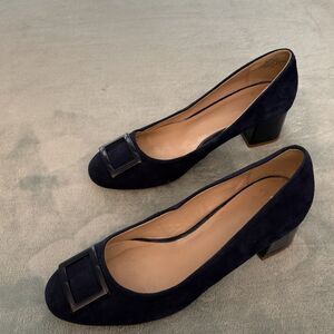 Crown &Ivy Shoes Womens 7.5M Blue Suede Pumps Block Heel Round Toe/Buckle Office