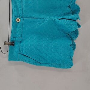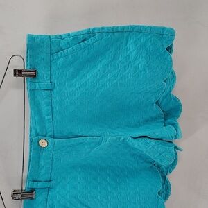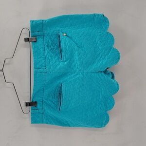 Crown & Ivy Shorts Shelby Textured Turquoise Scalloped Size 10 Stretch