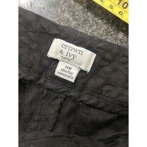 The Crown & Ivy Shorts in women's size 16 are a classic and preppy choice for the summer and spring seasons. These flat front chino shorts feature scalloped accents, a mid-rise fit, and are made from a blended fabric of cotton. With a zip closure, slash pockets, and a comfortable regular fit, these shorts are perfect for casual occasions and walking activities. Their black color and solid pattern make them versatile for any wardrobe, while the machine washable fabric ensures easy care and maintenance. Ideal for a plus-size woman looking for a stylish and practical short option.