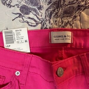 Crown & Ivy size 10 petite new with tags. Hot pink high rise skinny crop jeans.
