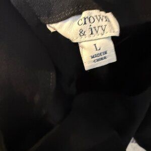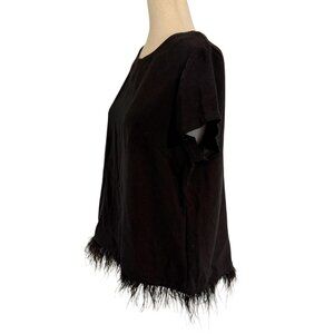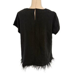 Crown & Ivy Size Large Feathers Hem Short Sleeve High Neck Blouse Top Black