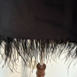 Crown & Ivy top with feathers along the hemline. Has a small keyhole with a button in the back. Gently worn with no visible flaws. Measures 22" from armpit to armpit and 23.5" long.