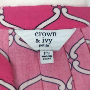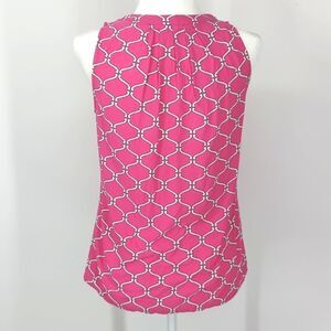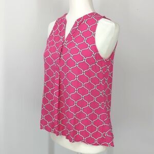Crown & Ivy Sleeveless V-Neck Hot Pink White Geometric Blouse SP Small Petite