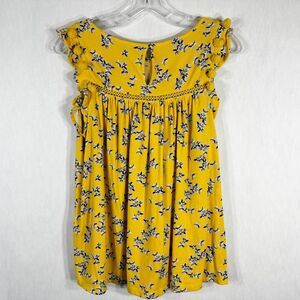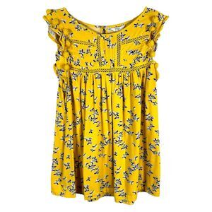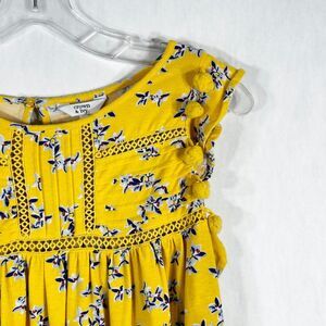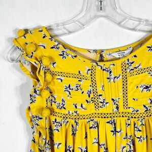 Crown Ivy Small Top Yellow Floral Pompoms Sleeveless Ruffled Eyelet A Line 1442