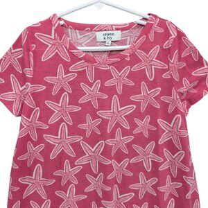 Crown & Ivy Starfish Shirt Dress Girls Pink White Short Sleeve Pullover Size M