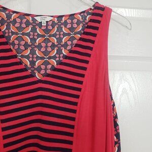 Crown & Ivy Stripe Bird Top Lightweight Sleeveless Blouse Womens Size XL