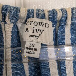 Crown & Ivy Womens 100% Cotton Blue Stripe Embroidered Boho Tassel Shirt Size 3X