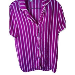 Crown & Ivy Striped Pajama Set Shorts 2 Piece Pink White Women's S Button Front