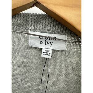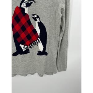Crown & Ivy Sweater Women XS NWT Grey Red Penguin Scarf Crewneck Knit Pullover