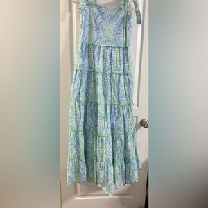 Chic maxi dress with a tropical pattern and pockets!! Features a sleeveless design and tiered skirt. Ideal for casual outings. Like New