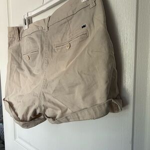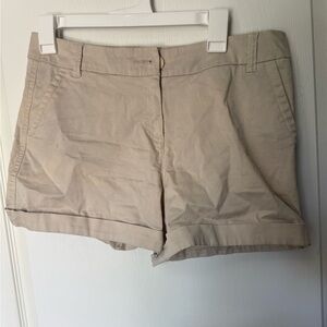 These tan shorts from Crown & Ivy feature a cuffed hem and a flat-front design, offering a clean and versatile look for casual wear. Made from a sturdy material, they provide both comfort and style for everyday outings.