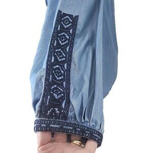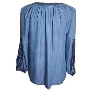 Crown & Ivy Top Lyocell Long Sleeve Boho Blue Embroidery Lace Women's Small
