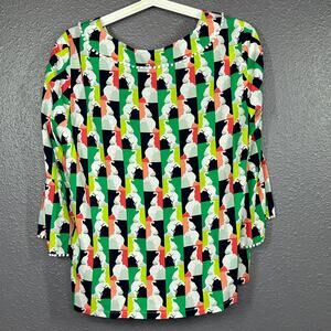 Crown & Ivy Top Petite Large Flowy Elephant Parade Print Peasant Green