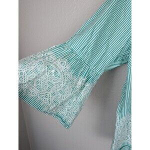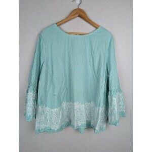 Crown & Ivy Top Womens 3X Blue White Striped Lace Boho Tunic Blouse Plus Size