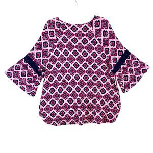 Crown & Ivy Top Women's 3X Pink 3/4 Bell Sleeve Crochet Stretchy Boho