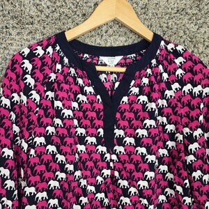 Crown & Ivy Top Womens PS Petite Small Purple Elephant Print Peasant Blouse