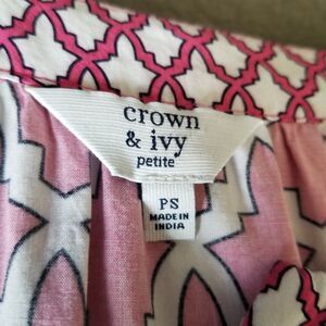 Crown & Ivy Top Womens Size Small Petite Bell Sleeve Geometric Print