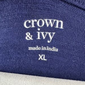 Crown & Ivy Top Womens XL Blue Navy Crew Neck Long Sleeves Smoked Elastic Cuff