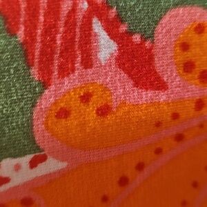 Crown and Ivy Tropical print dress with vibrant patterns. Features green, pink, orabge and red tones. Ideal for a lively style.