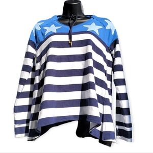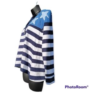 Crown & Ivy Weekend Stars & Stripes Hoodie Size Petite Small Blue White Stripe
