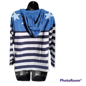 Crown & Ivy Weekend Stars & Stripes Hoodie Size Petite Small Blue White Stripe Long Sleeves