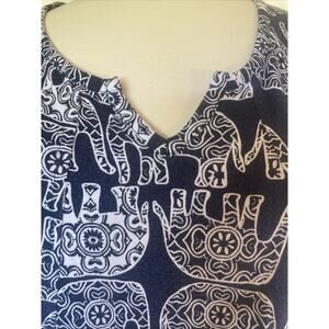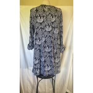 Crown & Ivy White & Blue Roll Tab Cotton Modal Soft Casual Knee Length Dress 1X