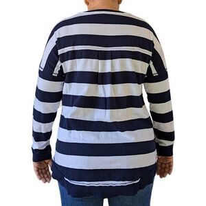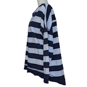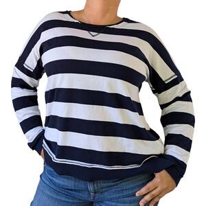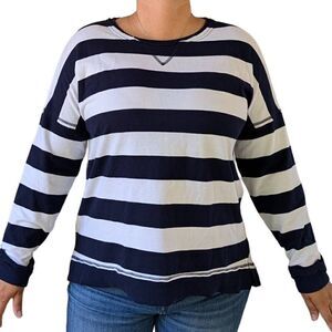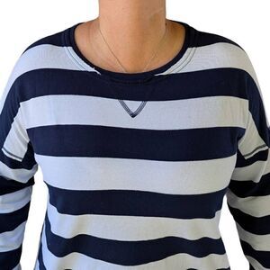 Crown & Ivy White Navy Striped Crewneck Pullover Sweatshirt Women Size Large