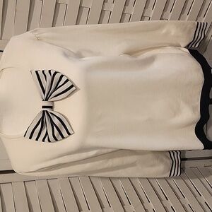 Crown & Ivy White Sweater With Navy Blue Trim And Bow Size Petite XL