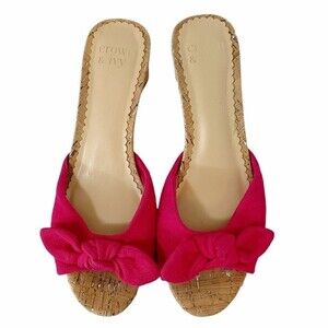 Crown & Ivy Winnie Slides Fuchsia Fabric Bow Cork Block Heel Sandal Size 7.5